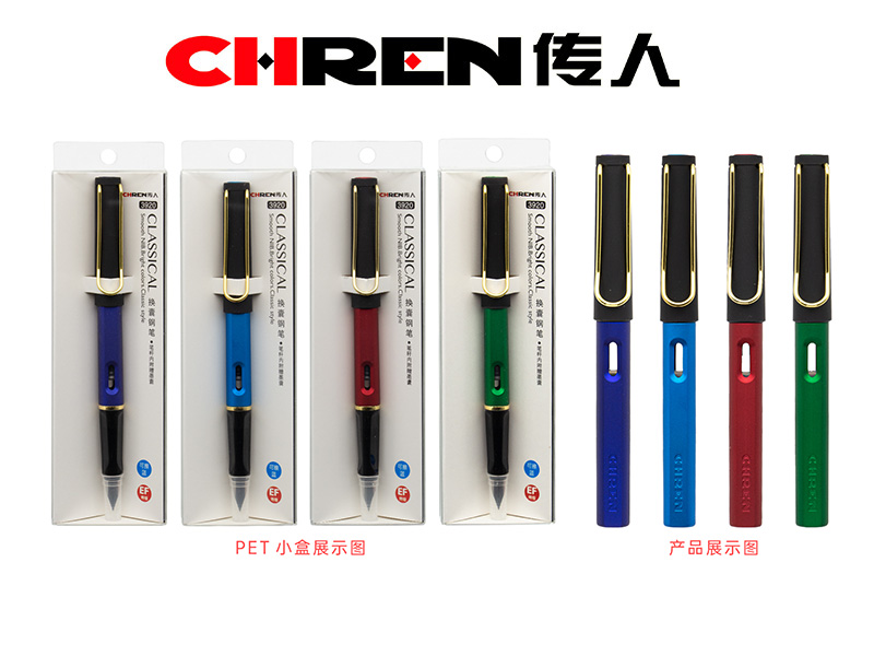 3. 每小盒内含1支EF大尖换囊钢笔+1支可替墨囊(笔杆内,通用3.4mm)。
