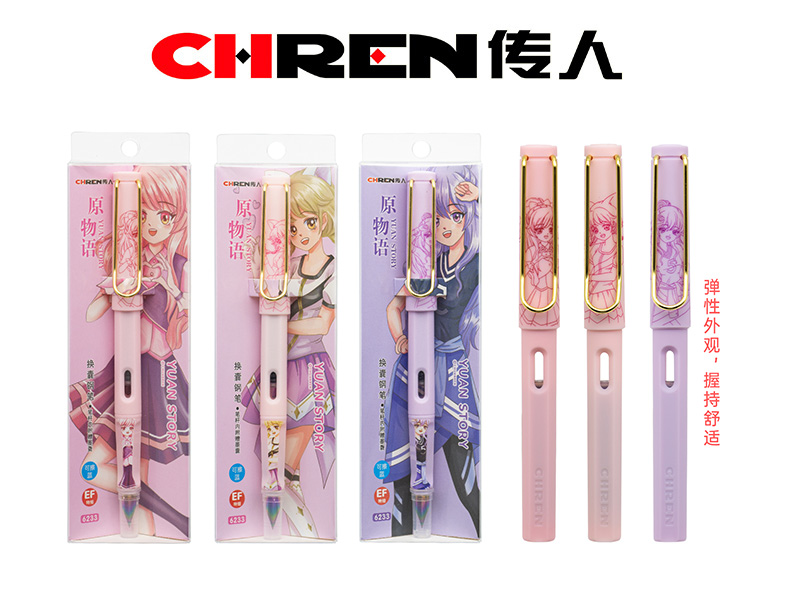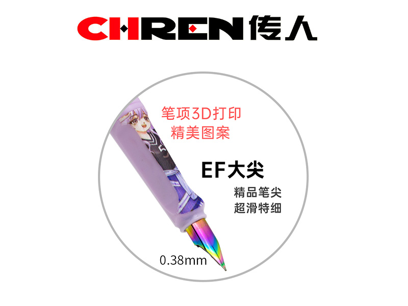 3. 每小盒内含1支EF炫彩大尖换囊钢笔+1支可替墨囊(笔杆内)。