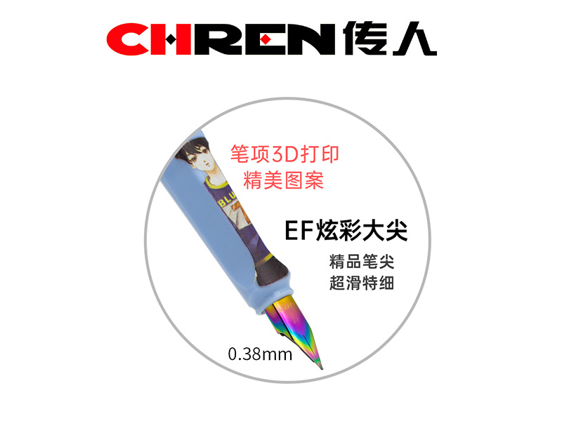 2. 笔项3D打印精美图案,新颖独特;同学少年主题,朝气蓬勃,增加书写乐趣;弹性外观,握持舒适;正姿笔握,有助于矫正握笔姿势,是练字的好选择。