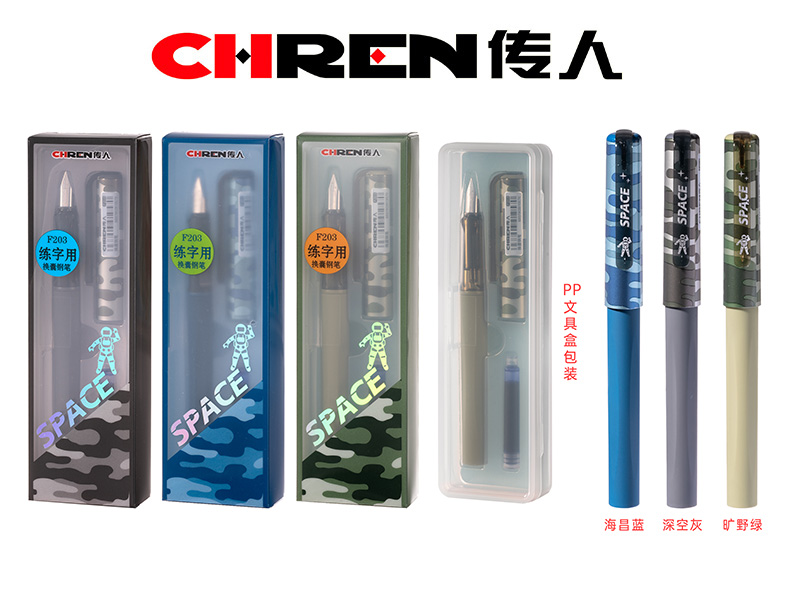 2. 迷彩太空主题,增加书写乐趣;弹性笔杆,质感上乘,握持舒适;笔夹印有精美太空人图案,别具-格;正姿笔握,更符合人的书写需求,有助于矫正握笔姿势,是练字的好选择。