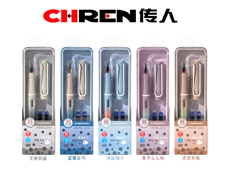 2. 开心奶茶铺主题,甜蜜治愈,清爽好心情;奶茶系渐变弹性外观,手感细腻,握持舒适,提升钢笔质感;正姿笔握,有助于矫正握笔姿势,是练字的好选择。