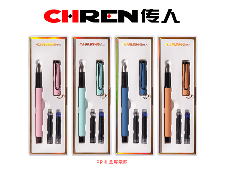 3,每小盒内含1支EF大尖换囊钢笔+1支吸水器(笔杆内)+2支可替墨囊(1黑1蓝,通用 3.4mm)。