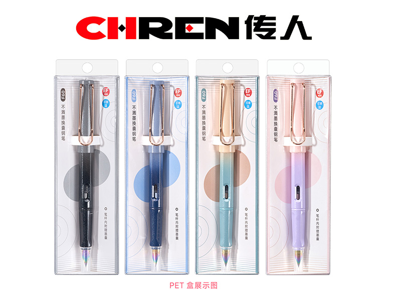 3. 每小盒内含1支EF大尖换囊钢笔+ 1支可替墨囊(笔杆内)。
