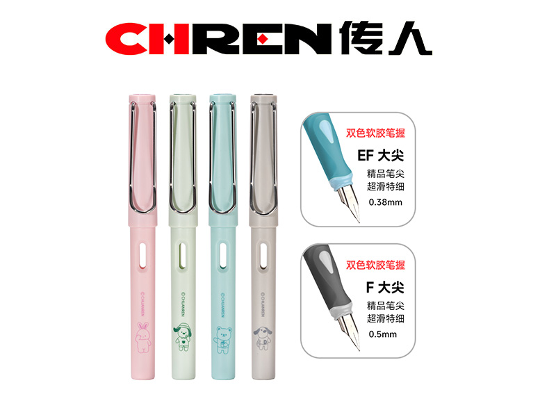 2,传人乐握系列,双色软胶正姿笔握,柔软舒适,防止疲劳,有助于矫正握笔姿势,是学生练字的好选择;下杆丝印精美卡通图案,可爱治愈,增加书写乐趣。