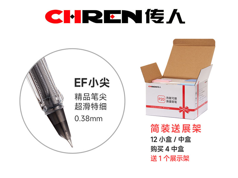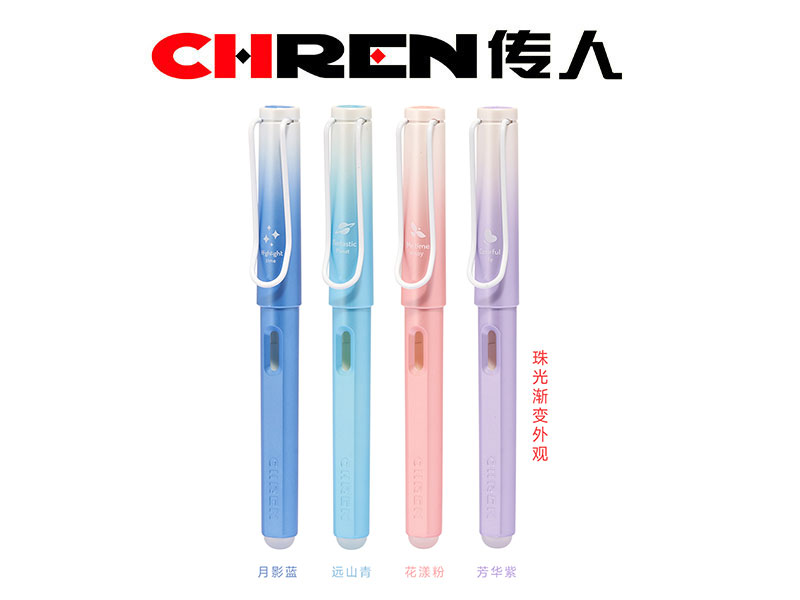 2.笔尾配备可擦橡皮头,写错就改,擦拭干净,建议搭配传人热敏可擦墨囊使用;钢笔采用珠光渐变外观,新颖时尚;上套丝印精美小图案,增加书写乐趣。