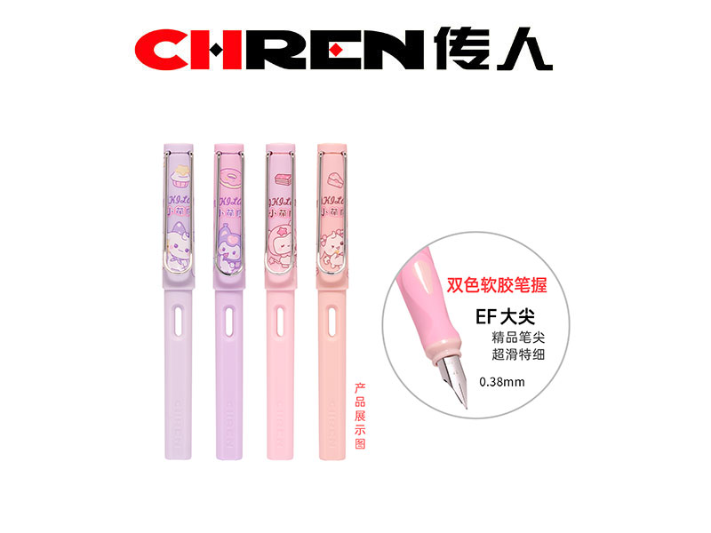 2.传人乐握系列,双色软胶正姿笔握,新颖独特,握持舒适,有助于矫正握笔姿势,是学生练字的好选择;钢笔外观采用哑光处理,质感丰富; “小萌园”主题卡通图案,精美可爱,增加书写乐趣。