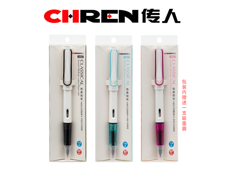 3.每小盒内含1支EF大尖换囊钢笔+1支可替墨囊(笔杆内,通用3.4mm)+1支吸墨器(包装内)。