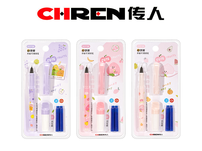 产品特点:这是一款神奇的热敏可擦钢笔,笔尾配备可擦橡皮头,写错就改,轻松擦拭,干净无痕,建议搭配传人热敏可擦墨囊使用;“果の物语”主题,萌趣可爱;正姿笔握,有助于矫正握笔姿势,是学生练字的好选择;赠送一支润笔器,写前润一润,以便更好书写。