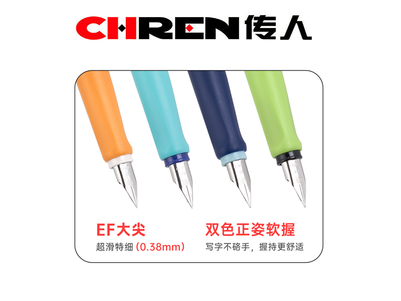 2.钢笔外观采用撞色搭配,色彩对比鲜明,个性十足;笔杆丝印小图案精致美观;双色软胶正姿笔握,握感舒适,长时间书写不易铬手,还能辅助矫正握姿,是学生练字的好帮手。