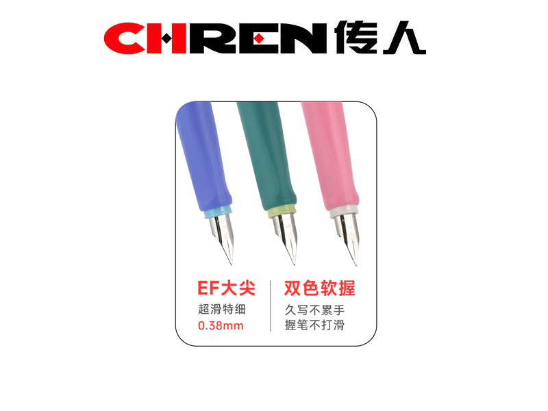 2.钢笔外观采用撞色搭配,色彩对比鲜明,个性十足;笔杆丝印小图案精致美观;双色软胶正姿笔握,握感舒适,长时间书写不易铬手,还能辅助矫正握姿,是学生练字的好帮手。