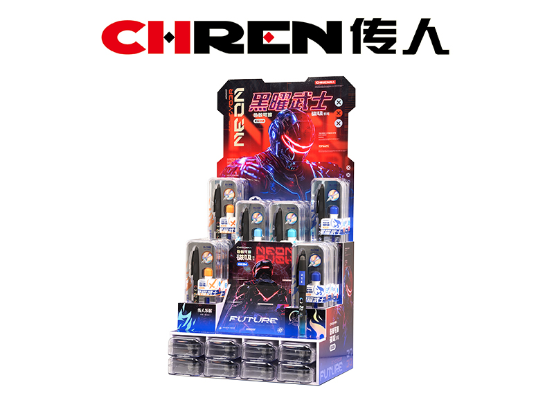 包装方式:1支/小盒,24小盒/展架,6展架/外箱,整展架包装,每展架配1支试写笔
